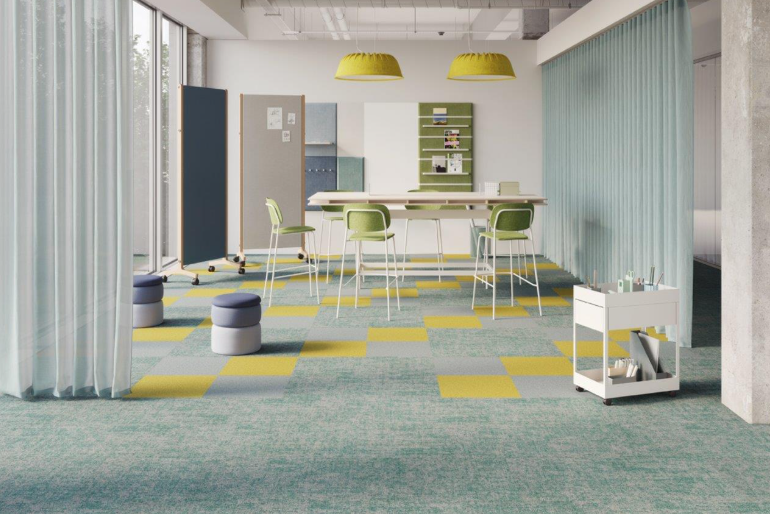 Complementando a oferta de pisos vinílicos, carpetes e revestimentos de parede, aqui na Tarkett também distribuímos os painéis acústicos KUAIET. Solução completa para paredes e forros, os painéis atendem ambientes de diferentes finalidades combinando design e circularidade, mostrando que o conforto acústico pode ser integrado de maneira sustentável aos interiores.