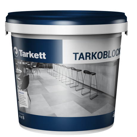 Tarkoblock® é um impermeabilizante bicomponente (componentes A e B) de cor azul, composto por poliuretano 2K, indicado para aplicação em áreas internas com as seguintes características: - Como barreira de vapor em lajes de concreto ou contrapisos de cimento com umidade ascendente ou residual e PH elevado, antes da instalação de pisos vinílicos, madeira ou borracha. Umidade máxima = 6% pelo método CCM (carbureto de cálcio). - Como agregador de partículas em lajes de concreto ou contrapisos fracos/com esfarelamento. Atenção: o Tarkoblock® não altera a resistência mecânica do substrato, apenas agrega partículas soltas (pó).