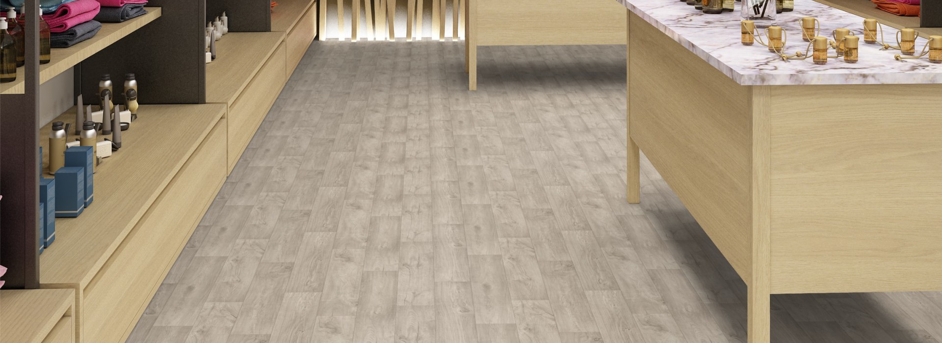 Ao pensar em um piso para áreas de venda e exposição de produtos, onde a circulação de clientes e carrinhos é frequente, você deve prezar pela facilidade de limpeza, pelo conforto acústico e pela facilidade de manutenção e reparo.